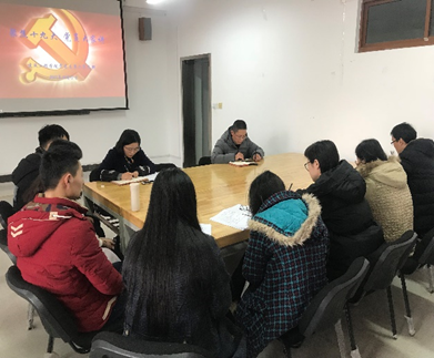 首先支部书记唐喜芬从宣传、理论,、实践三方面制定了建工学院第二党支部学习宣传贯彻党的十九大精神的工作方案并对支部全体党员学习十九大提出了明确要求。接着党总支副书记祁顺彬与各位党员交流了自己的十九大学习心得,着重提到十九大报告中关注到的四个“新”与对学生工作新的认识。最后,唐喜芬对此次政治学习进行总结。