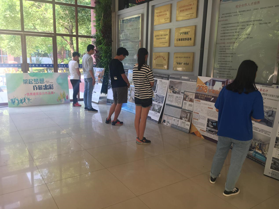 近期,结合毕业设计答辩工作,建筑工程学院在广宇楼一楼大厅举办了优秀建筑设计作品展活动,对毕业设计答辩中的优秀设计作品进行集中展示,十余幅设计作品展板形成了一道亮丽的风景线,吸引老师同学们的参观,得到了一致的好评。