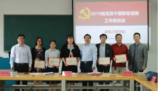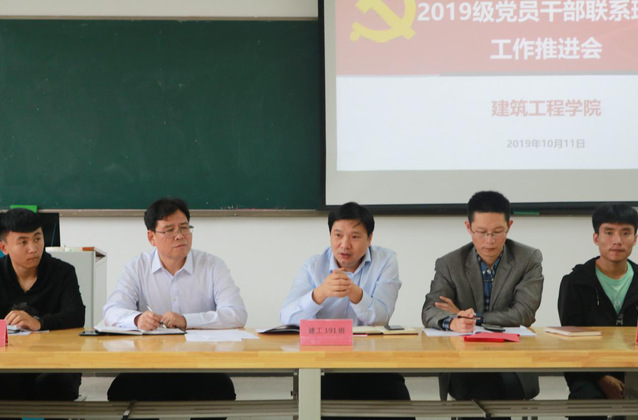 为了深入贯彻国家和省高校思想政治工作会议精神,充分发挥学校党员干部在教育引导学生中的作用,10月11日下午,建筑工程学院党总支在广宇楼414室召开了党员干部联系班级工作推进会议。会议由建筑工程学院党总支陈晋中书记主持,联系校领导王道峰、建筑工程学院党政领导、2019级全体班主任和第二班主任、以及2019级学生代表参加。会议议程上,建工学院唐喜芬副书记首先宣读了学校《关于聘任2019级第二班主任职务的通知》,学工办曹莹老师带领学习了《党员干部联系学生班级工作实施意见》,校领导王道峰副院长、院领导张文斌院长及陈晋中书记为第二班主任颁发聘书。