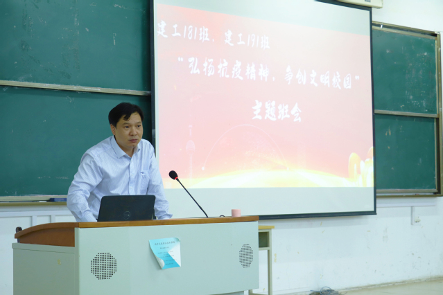 9月29日晚,建工181班、建工191班“第二班主任”王道峰副院长来到联系班级参加“弘扬抗疫精神,争创文明校园”主题班会。