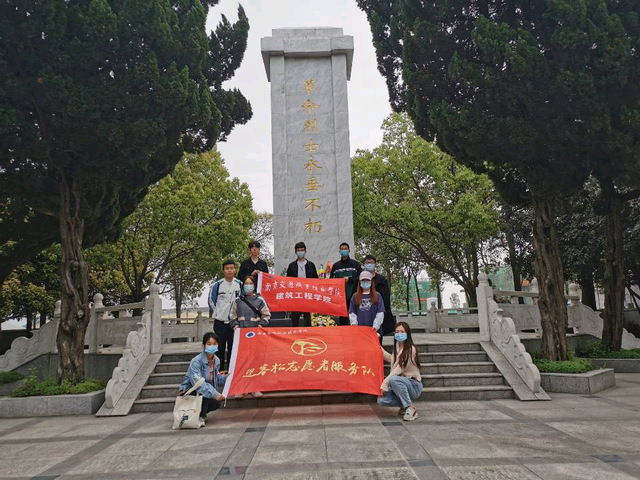 2021年4月11日建筑工程学院迎客松志愿者服务队前往龙都烈士陵园,开展党史学习教育实践活动,大家通过实地参观烈士陵园,了解江宁红色革命历史,进一步坚定理想信念,用无私奉献的志愿服务献礼建党100周年。