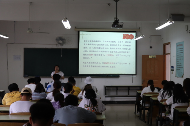 会议开始,倪老师播放了一段专题片《光影里的抗战》第三集《隐蔽战线》,以此拉开此次公开课暨培训会的主题:“讲党史之中共隐蔽战线上的“前三杰”。倪老师为大家讲述了第二次国内革命战争时期中共隐蔽战线上三位英雄-钱壮飞、李克农、胡底不为人知的感人故事。讲到三位英雄不畏危险、深入敌后、甘于默默无闻的原因,倪老师说:“‘龙潭三杰’对革命充满斗志的原因是他们选择了接受中国共产党革命理论的熏陶,了解了我党的宗旨和初心,党对他们的感召就像黑暗中看见一盏明灯,他们决定要为民族复兴而奋斗!包括所有的地下工作者,他们被称为英雄正是因为他们坚强的信念和崇高的信仰!”