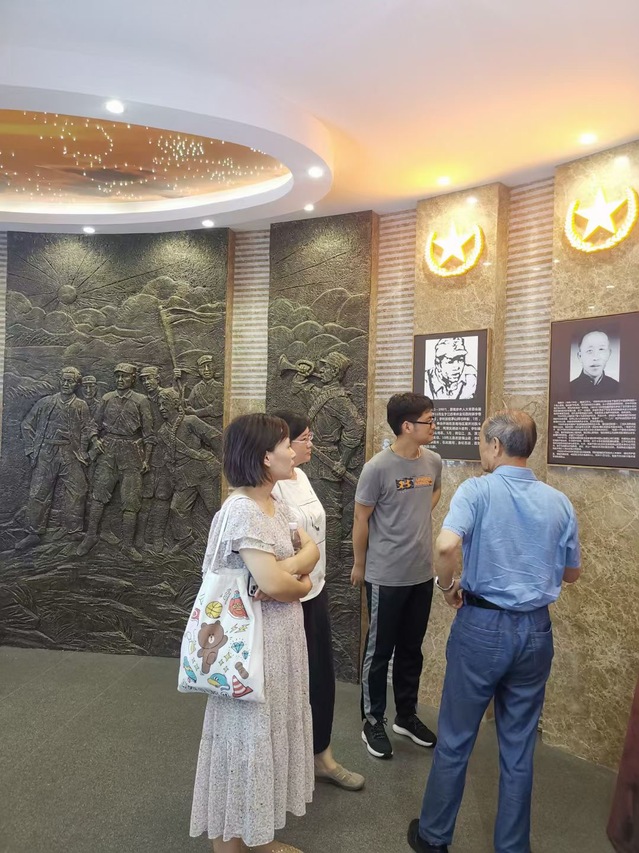 随后来到新四军革命纪念馆,陶家齐烈士后人陶和寿老先生为同学们讲述了新四军革命烈士陶家齐的抗战艰苦斗争历程和为守护党的情报而英勇牺牲的伟大精神。听着先辈的陈述,大家仿佛回到了那个战火纷飞的年代,感受到为了全国解放,新四军将士们所付出的巨大牺牲。