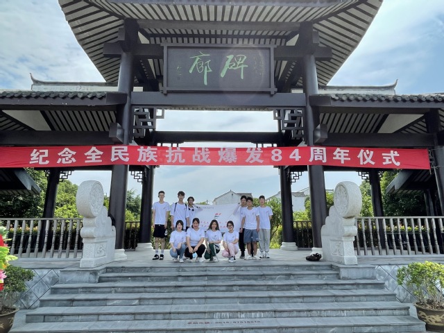 正逢全民族抗日战争爆发84周年纪念日,伴随着雄壮的国歌声,团队人员在到达目的地之后参加了升国旗仪式并对先烈进行默哀缅怀。礼毕,在讲解员的带领了看到了新四军服务于百姓初心、忠诚于人民的使命、奉献于党国的担当。