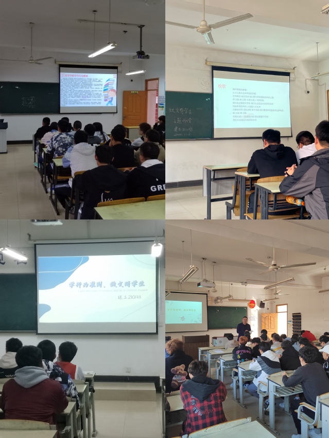 为落实学院“养成教育月”工作部署,引导广大2021级学生规范言行举止,积极参与文明班级、文明学院、文明校园创建,建筑工程学院于10月28日-11月 15日开展“学行为准则、做文明学生”养成教育主题班会,全体2021级新生及班主任参加。
