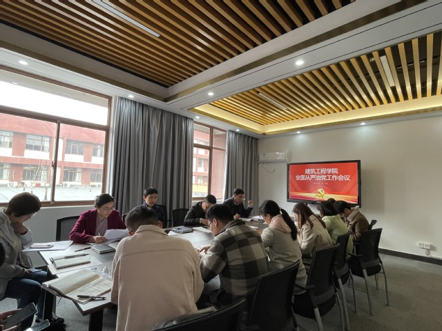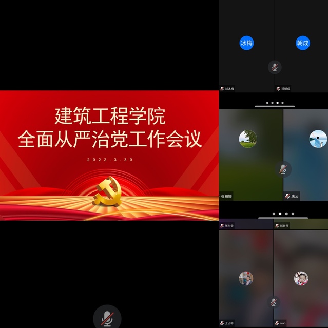 2022年3月30日下午,建筑工程学院通过线上线下相结合的方式在广宇楼320召开全面从严治党工作会议,会议由张文斌院长主持,学院全体党员参加。