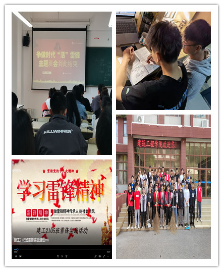 各团支部分别围绕“学习宣传雷锋精神”、“开展主题讨论”、“讲好雷锋故事”、“践行雷锋精神”开展集中学习、讨论交流、服务实践等活动。其中,建工205班团支部在班级开展“一对一帮扶”活动,让雷锋精神在班级发扬光大,促进班级同学共同进步;建工2105班团支部分别从观看影片、主题团课及打扫卫生三个方面开展学雷锋主题团日活动,从思想到行动,带领同学们重温雷锋精神,引导同学们积极投身于志愿服务的社会大潮中。