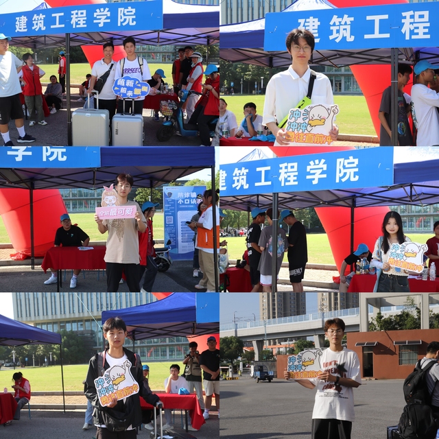 新生们手举迎新牌,快门拍下他们在交院的第一张照片。迎新也是一种爱心传递,希望通过这一个个举动,让新生们从踏进校园的那一刻就能感受到建筑工程学院这个大家庭的温暖。
