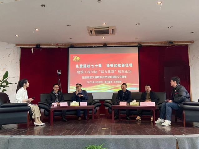 在热烈庆祝南京交通职业技术学院建校70周年之际,建筑工程学院于11月18日下午14时30分在明德楼报告厅举办“活力建筑”校友论坛。学院邀请了五位优秀校友返校,重温当时岁月,重逢良师益友,共话今日校园。参会人员包括建筑工程学院院长张文斌、党总支书记陈晋中、优秀校友、校友班主任、教研室主任和2022、2023级部分在校生,论坛由张丽雅老师与张志飞校友主持。