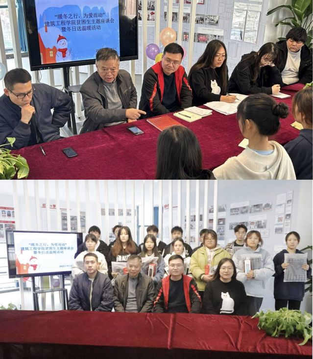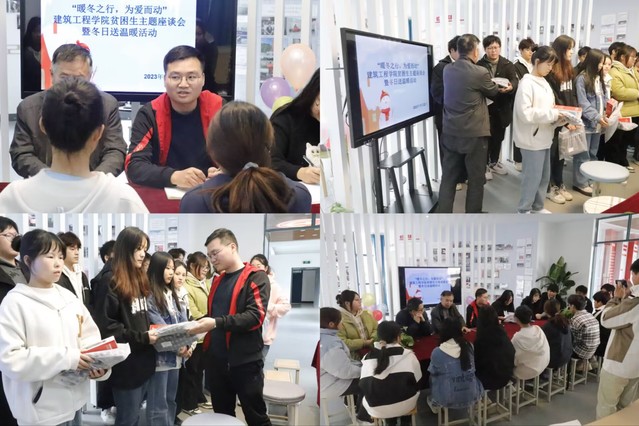 为深入了解贫困生实际需求,倾听贫困生的所想、所感、所思,做好家庭经济困难学生的资助工作,同时加强学生诚信感恩教育,强化资助育人成效,建筑工程学院于2023年11月22日下午14:30在学生公寓A栋一站式社区举行“暖冬之行,为爱而动”贫困生主题座谈会暨冬季送温暖活动,参会的人员有建筑工程学院关工委常务副主任唐利国老师、学工办杨步老师、23级年级辅导员唐云老师、负责资助的辅导员倪丹老师以及23级家庭经济困难学生代表。