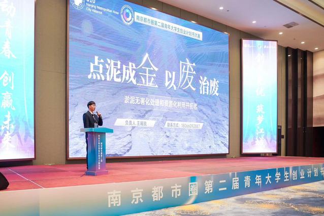 近日,由南京市人社局、芜湖市人社局联合牵头,镇江、扬州、淮安、马鞍山、滁州、宣城、常州金坛、常州溧阳人社部门共同参与,以“舞动青春创赢未来”为主题,开展南京都市圈第二届青年大学生创业计划书大赛。我校“点泥成金,以废治废——淤泥无害化处理和资源化利用开拓者”(项目负责人:王曦锐,指导教师:张健、郭振华)项目入围决赛,与本科生团队同台竞技,从都市圈近千个优秀创业项目中脱颖而出,最终以总分第一的优异成绩获一等奖。