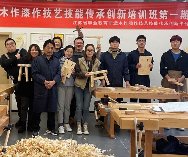 非遗平台团队成员以及十余名学生,用两天时间学习了传统木作中极具挑战性的“四腿八叉凳”基础制作技艺。