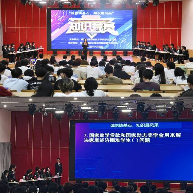 为了弘扬诚信美德,宣传高校学生资助政策和诚信知识,强化诚信教育,由校学生工作处主办、建筑工程学院承办的2024年“诚信铸基石,知识展风采”学生资助诚信教育主题知识竞赛决赛于2024年6月4日在大学生活动中心226举行。