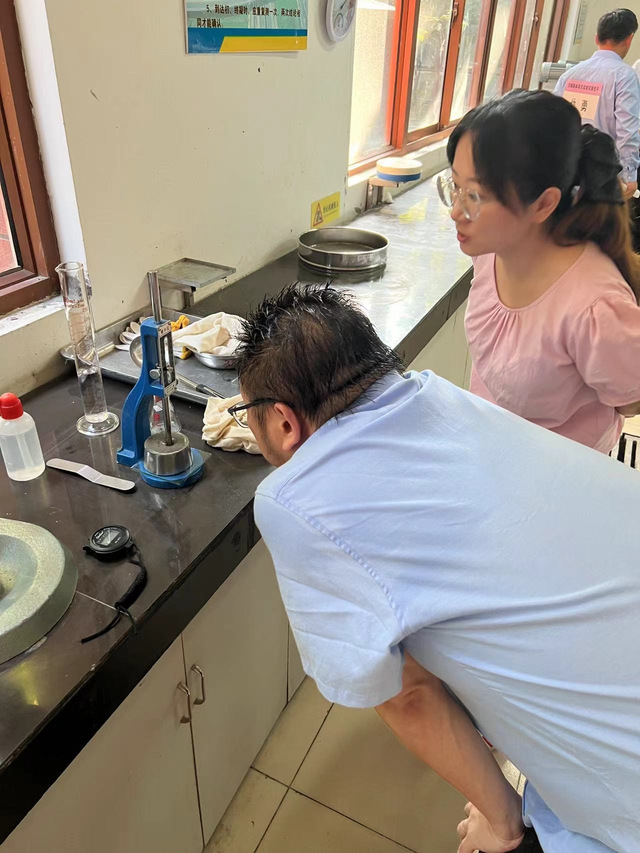 实践操作培训是本次集中培训的重点。学员们全身心投入到了水泥标准稠度测验和钢筋拉伸实验这两项关键实践操作环节,展现出了极高的专业素养和学习热情。在水泥标准稠度测验现场,学员们在指导老师的详细讲解下,凭借着扎实的理论基础和认真的实践精神,顺利地完成了水泥标准稠度测验,为后续的水泥相关施工技能大赛和实际应用打下了坚实的基础。在钢筋拉伸实验区域,学员们同样展现出了高度的专业水准。学员们通过观察钢筋的变形情况以及记录屈服强度、抗拉强度等关键数据,深入了解了钢筋的力学性能。通过培训,学员们不仅掌握了钢筋拉伸实验的操作技能,还进一步加深了对建筑材料力学性能的理解,这对于在实际工程中合理选用钢筋材料以及确保建筑结构的安全性具有重要意义。