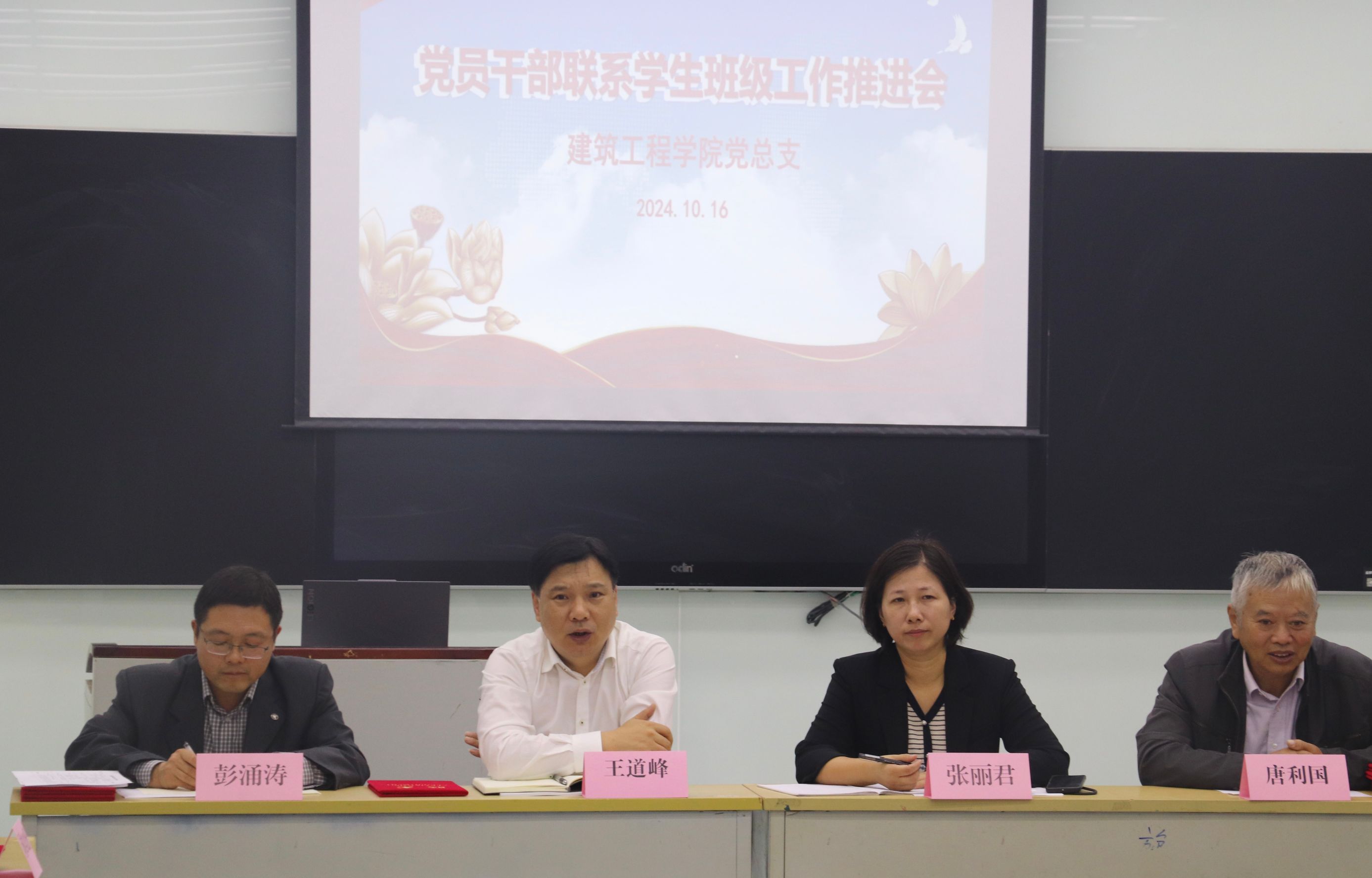 为进一步落实立德树人根本任务,增强师生沟通交流,10月16日下午,建筑工程学院在汇贤楼B楼303智慧检测实训室以“凝心聚力 共话发展”为主题召开党员干部联系学生班级工作推进会。联系校领导王道峰院长作为第二班主任出席会议并讲话,建筑工程学院党总支书记张丽君、副书记彭涌涛、关工委常务副主任唐利国、学工办全体辅导员、2024级全体班主任、第二班主任、班长参加会议,会议由党总支书记张丽君主持。