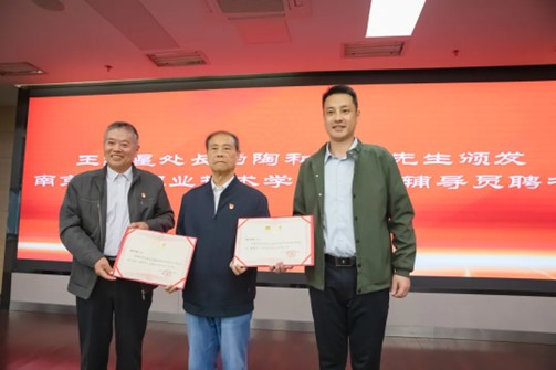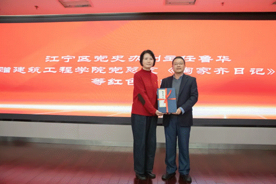 仪式上,王红星处长与陶和寿老先生签订“陶家齐烈士学生助学金”捐赠协议;王红星处长、唐利国老师为陶和寿老先生颁发南京交通职业技术学院校外辅导员、建筑工程学院关工委校外育人导师聘书;江宁区党史办副主任鲁华赠建筑工程学院党总支《陶家齐日记》等红色书籍。签约仪式后,全体集中观看央视4套《国家记忆》——《雨花台家书 民族英魂 陶家齐》。