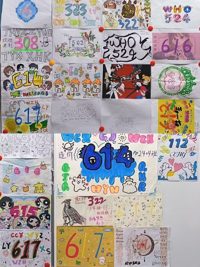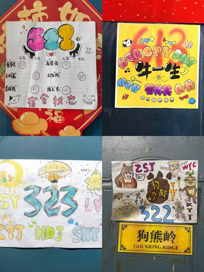 本次宿舍门牌设计活动吸引了众多同学踊跃参与,共计102 位同学精心制作了 75 份作品。同学们施展自身的想象力与创造力,凭借各种材料和工具,用心设计并制作出独具一格的宿舍门牌。有的门牌富有浓郁的艺术韵味,以精美的绘画展现宿舍成员的别样风采;有的门牌巧妙融入诙谐元素,让人不禁开怀大笑;还有的门牌彰显了宿舍的团结友善,传递出温馨和睦的氛围。经评审,最终有25份作品脱颖而出。这些作品将在学生社区进行展示,成为社区文化里一道独具魅力的风景线。