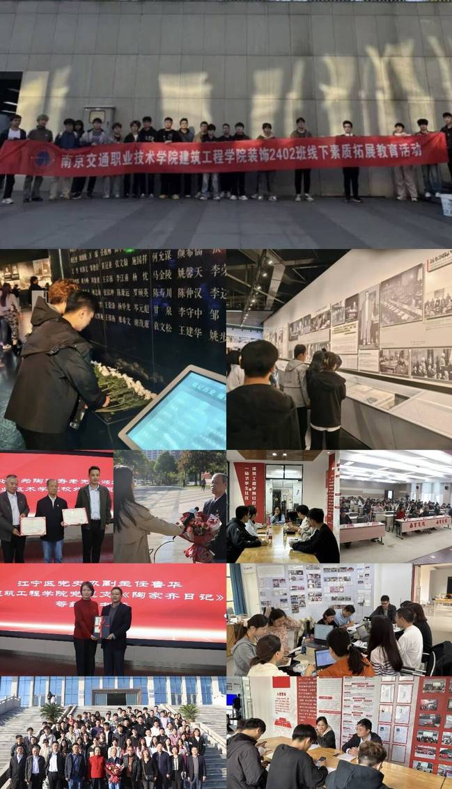 爱国主义教育是大学生思想政治教育的重要内容。为促使青年学生深刻认识、继承并弘扬老一辈革命家的优良传统,带动青年弘扬爱国主义精神,10月24日下午,建筑工程学院以“赓续红色血脉 汲取奋进力量”为主题在图书馆B203举办“陶家齐烈士学生助学金”签约仪式暨陶家齐烈士抗战事迹宣讲会。宣讲会上,陶家齐烈士后人陶和寿老先生以《重走父亲抗战之路》为主题开展陶家齐烈士抗战事迹宣讲会,陶老以感人的事迹、朴实的语言、真挚的情感,生动阐释了以陶家齐烈士为代表的“雨花英烈”们百折不挠、坚韧不拔的伟大抗战精神。10月10日至10月30日,建筑工程学院2024级部分班级组织学生前往侵华日军南京大屠杀遇难同胞纪念馆等南京爱国主义教育基地开展爱国主义教育活动。10月31日下午学生党员“榫卯”工作坊在A栋“红灯塔育人一站式社区”成立,“榫卯”工作坊将作为党员自我教育、自我管理、自我服务的重要平台,倾听同学心声,关注同学需求,为同学们的成长成才保驾护航,以实际行动践行党的初心和使命。