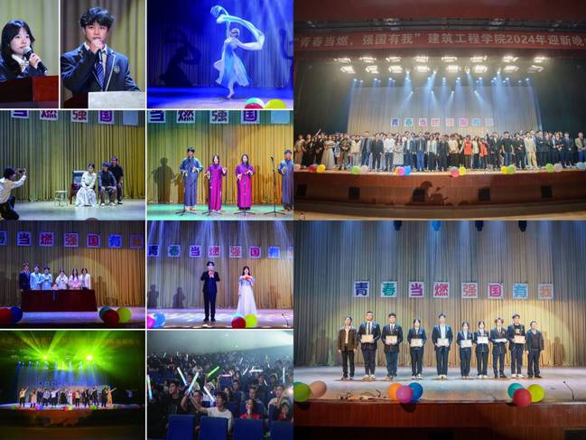 为丰富校园文化,树立优良学风,给建筑工程学院2024级新生们提供展现自我风采的舞台,2024年10月30日晚,建筑工程学院——“青春当燃 强国有我”迎新晚会在图书馆报告厅隆重举行,快板《校园生活说》、独唱《爱很简单》、乐曲《都选C》、舞蹈《等你的回答》、红色朗诵《数风流人物,还看今朝》、水袖舞《神女劈观》、话剧《走过场》、合唱《飞云之下》、街舞《街舞串烧》等节目为所有观众呈现了极致的视听盛宴。建筑工程学院师生及我校留学生代表合唱的《我爱你中国》更是激起全场师生的爱国情怀,大家随着音乐一同挥舞着手臂,共同歌唱“爱你中国,我亲爱的母亲”为本场晚会画上圆满句号。
