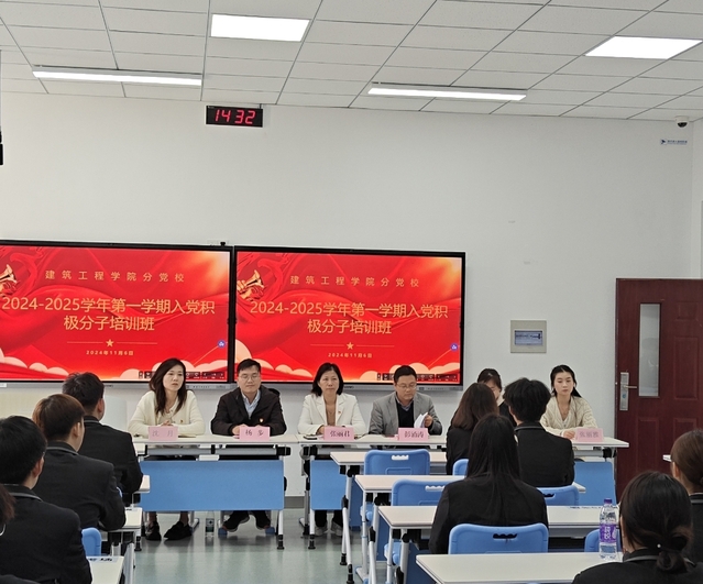 建筑工程学院于 2024 年 11 月 6 日下午在明德楼 301 教室举办第 45 期入党积极分子培训班开班仪式。建筑工程学院党总支书记张丽君、副书记彭涌涛、专职组织员沈月、第二党支部书记杨步、宣传委员张丽雅、组织委员兼党校班主任曹莹及第45期入党积极分子培训班全体学员参加会议,开班仪式由杨步老师主持。