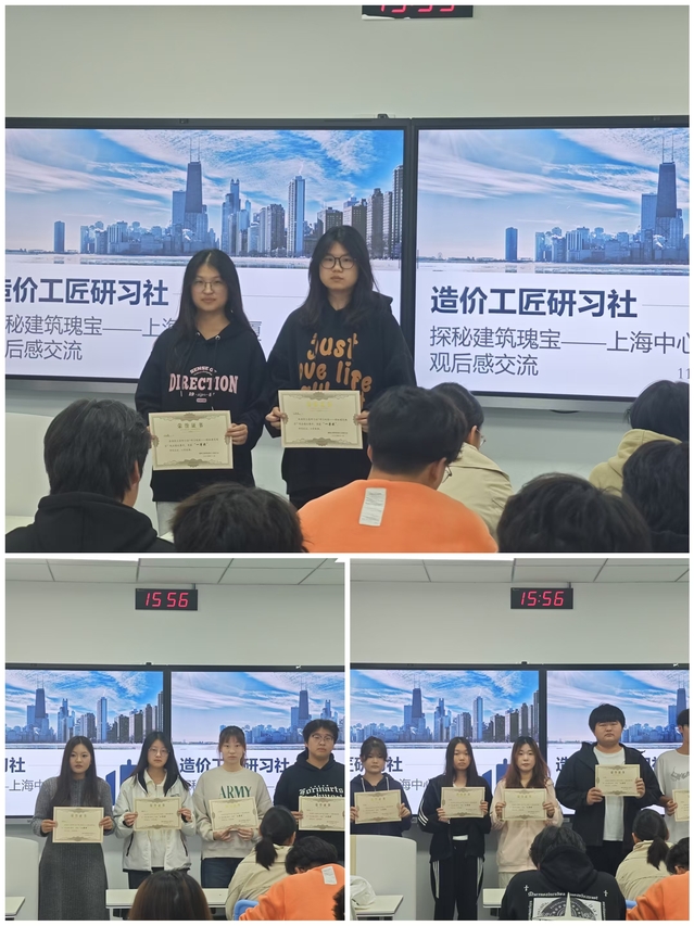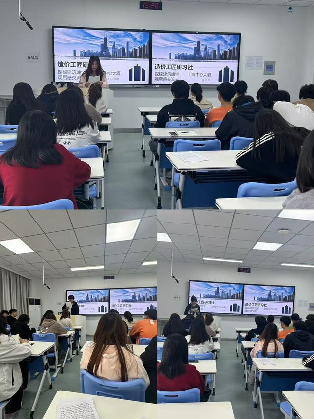 11月3日,“造价研习社”于明德楼517举行了《研习观影:探秘建筑瑰宝——上海中心大厦》这一活动。在活动期间,同学们观看了“上海中心大厦纪录片”观看期间他们全神贯注,被这一纪录片深深吸引,内心满是对这一建筑的深深敬意和对造价知识的渴望。