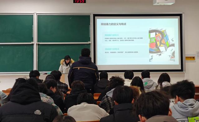 活动伊始,主讲人以“粉发女孩事件”“刘某某寻亲事件”“网络挂厕事件”等案例展开,引发参会同学对网络言论尺度的思考;同时从个人层面深挖网暴危害、从社交维度阐述网络暴力对群际情绪、圈层对立等影响。