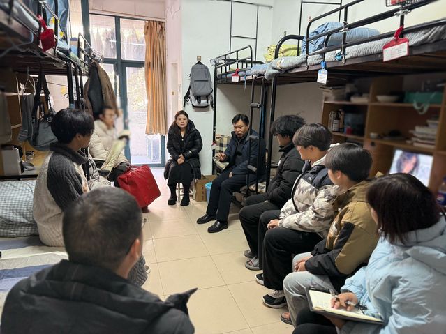 午餐会开始前,王院长走进联系班级学生宿舍,深入了解学生近期的学习和生活情况。“冬天要穿上棉拖鞋”“小游戏小视频可以看,但是不能占用学习时间”“要多读书、读好书”……一句句语重心长的叮嘱让学生倍感温暖。
