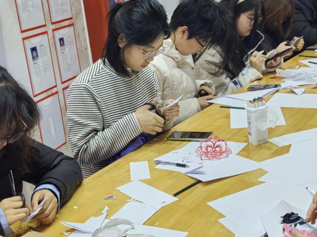 活动现场气氛热烈而温馨,同学们沉浸在这一方充满艺术气息的天地里,用剪刀与纸张进行着一场无声的对话。他们不仅用心感受着传统文化的独特韵味,更在创作中融入了自己的理解与创意,让古老的剪纸艺术在学生手中焕发出新的活力与光彩。