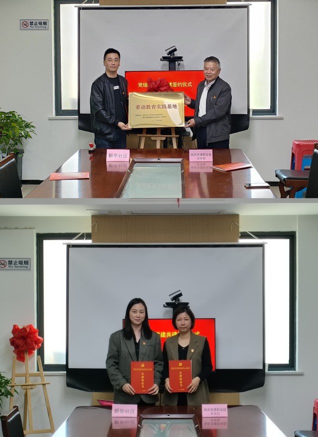 签约仪式上,双方围绕“资源共享、优势互补、协同发展”的共建目标签署协议,明确将通过组织联建、活动联办等举措,探索党建引领基层治理的创新路径。南京交通职业技术学院建筑工程学院党总支书记张丽君表示:“此次共建是深化校地融合的重要实践,学院将充分发挥专业优势和人才资源,助力社区治理提质增效,同时为青年学生搭建扎根基层、服务社会的实践平台。”新华社区党总支书记孙卉指出:“与高校党支部结对共建,为社区治理注入了新鲜血液和创新思维。未来,我们将以劳动实践基地为载体,推动大学生志愿服务、社会实践与社区需求精准对接,共同打造共建共治共享的治理新格局。”