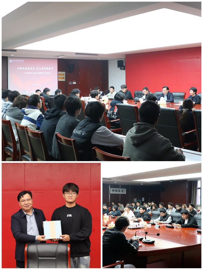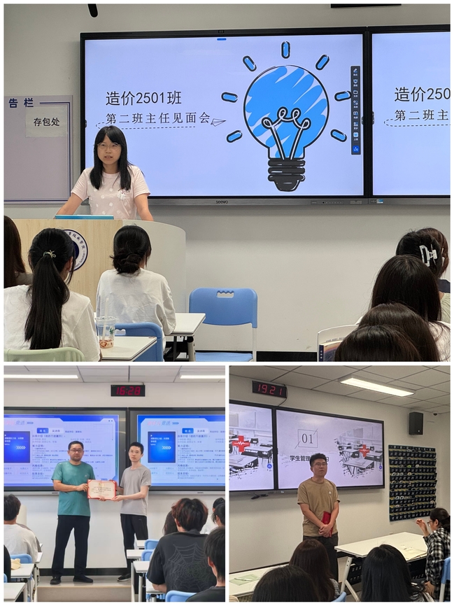 会上,杨步介绍了班级基本情况,张丽君为王道峰院长颁发了“第二班主任”聘书,这标志着王院长正式成为建工2502班的一员,班长齐明轩代表班级向王院长赠送了全班同学签名的笔记本,表达了全体同学的敬意与感谢。